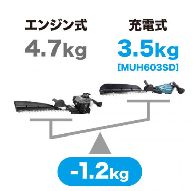 「MUH503SD」「MUH603SD」「MUH753SD」はエンジン式に比べ圧倒的軽量となっており、取り回し性に優れます。