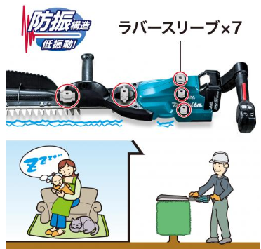 ラバースリーブが振動を吸収し、作業後の手のしびれや疲れを大幅に軽減。