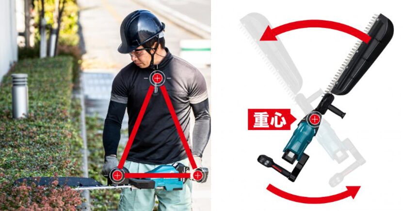 重心より先端側の重量が軽いため、軽快な取り回しと高い作業性を実現しています。