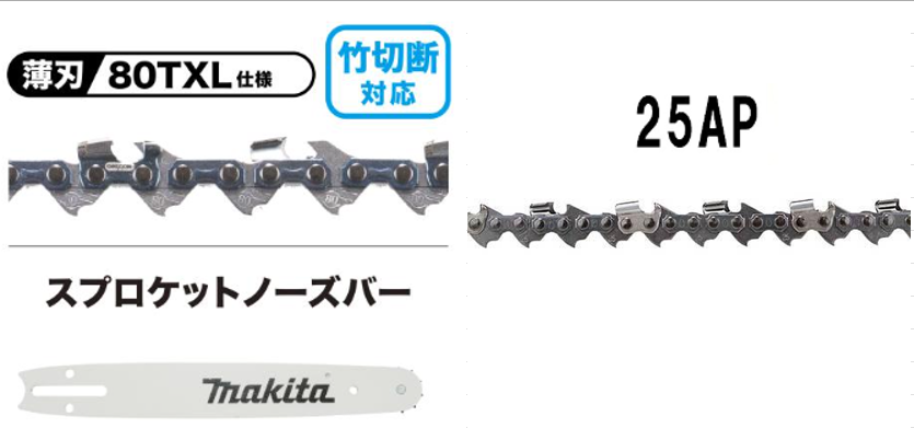 以上、チェーン刃 80TXLと25APとの違いを解説しました。