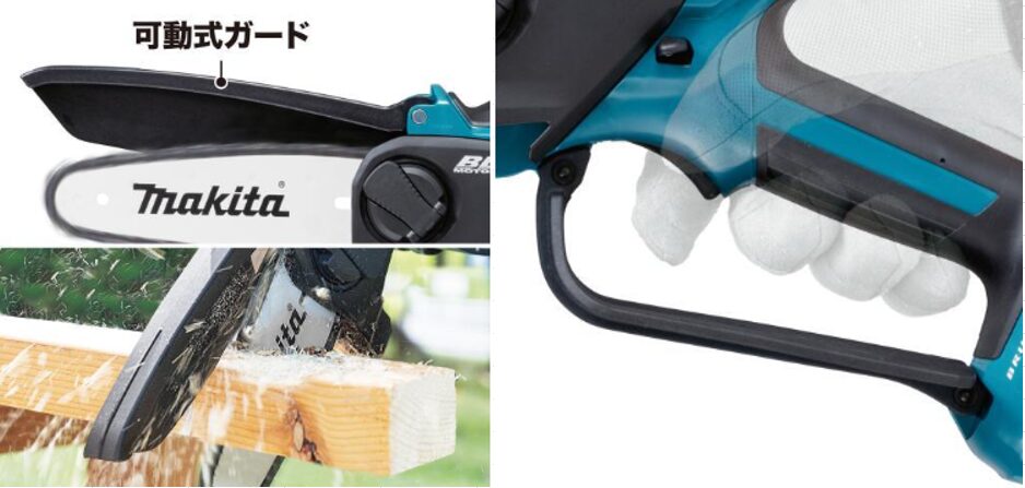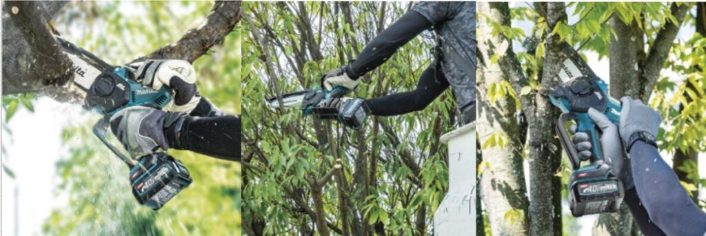 またバッテリーも長持ちするため、一度にたくさんの木を処理できること、18Vバッテリーは他にもさまざまなマキタ製品に使用できることなど、非常に便利です。