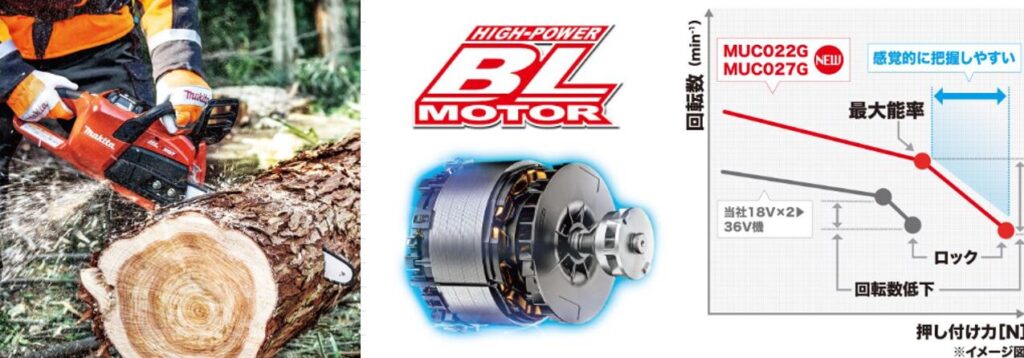 『MUC027G/MUC022G』は40Vmaxのバッテリを使用しており、35mlクラスのパワーを実現しています。