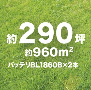 BL1860B(18V-6.0Ah)×2本装着時で、1充電約960m²・連続約26分の作業が可能。