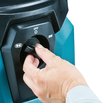 運転音低減。毎分約1Lの節水が可能。モータの回転数をレバー操作で素早く切替え可能。