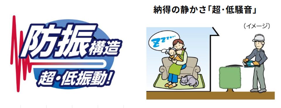 ②不快な体感ノイズを大幅にカット。住宅街や早朝の作業でも気兼ねなく使えます。
