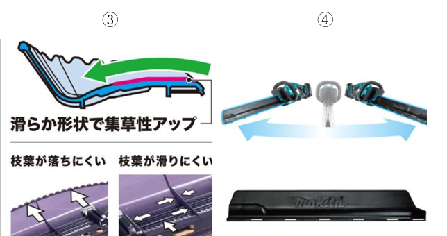 刈った枝葉を集めやすい形状となっています。