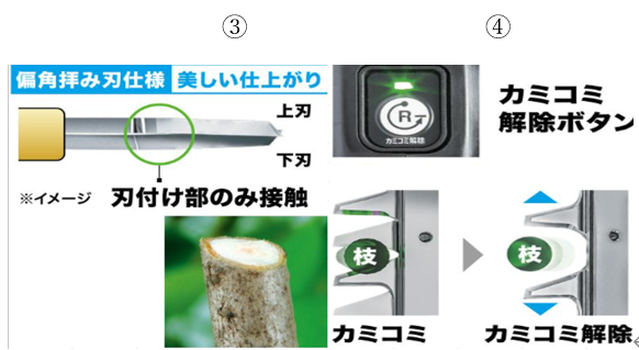 枝のカミコミを刃物の逆転動作で素早く解除します。