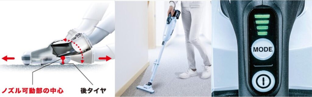 滑るような操作性      じゅうたん等の清掃に    使いやすいワンタッチスイッチ