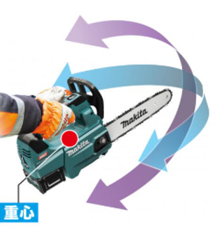 チェーンスピード、24.8m/秒。太径の切断から枝打ち・高所作業等、軽快に切断可能。