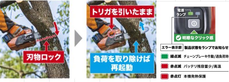 一般家庭用のみならず街路樹・公園回り・寺社仏閣などパワーを求めつつ安全性や操作性を重視する造園業者・緑地管理業者などにもおすすめとなっています。