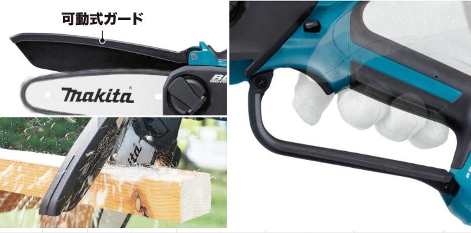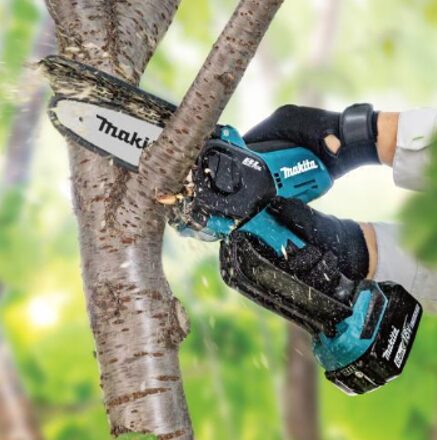 またバッテリーも長持ちするため、一度にたくさんの木を処理できること、18Vバッテリーは他にもさまざまなマキタ製品に使用できることなど、非常に便利です。