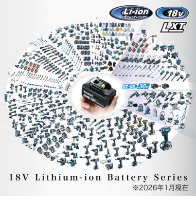 対応する18Vバッテリは圧倒的な互換性草刈機、ハンディソー、ブロワ、運搬車、ファンジャケット、保冷温庫、インパクトドライバ、マルノコ、スマートフォン充電、クリーナ、ファン、ライトなど300モデル以上に共通使用可能。