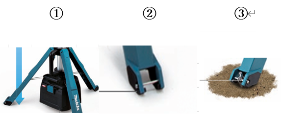 ②三脚先端部は、おもりを載せやすい段差形状となっており、滑り止めのゴムも付いています。