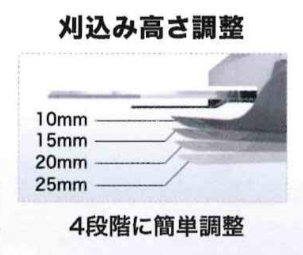 刈込み高さ調整4段階(10㎜~25㎜)