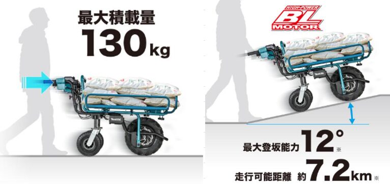 DCブラシレスモーターを採用し、最大130kgの積載物を安定走行。