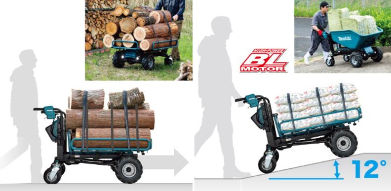 また電気ブレーキを搭載しており、傾斜12度・180kg積載時でも確実に制動。