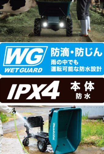 Wet Guard設計(IPX4相当)により雨天時や水を扱う現場での使用も安心。
