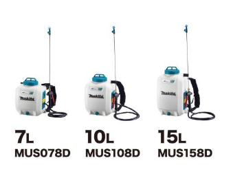 マキタ MUS078D/MUS108D/MUS158Dは、18V LXTバッテリー対応の充電式背負い式噴霧器として、プロ農家・果樹農家・造園業など本格的な噴霧作業を行う方に最適な製品です。