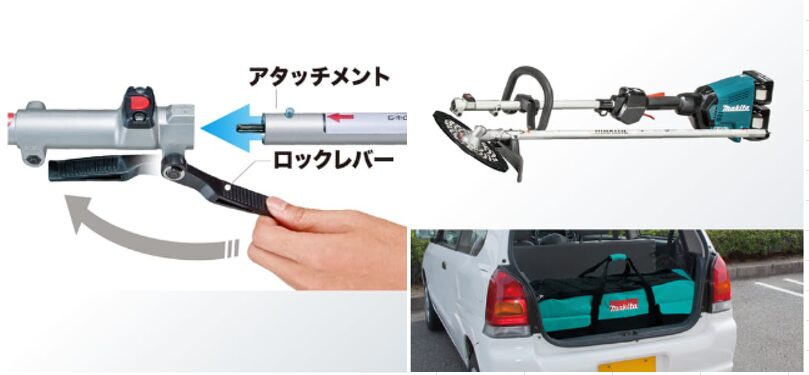 また、ポールソーアタッチメントやヘッジトリマアタッチメントのような上向き・横向きでの作業、パワーブラシアタッチメントやパワースイープアタッチメント、カルチベータアタッチメント、グラウンドトリマアタッチメントなど転がして使用するモデルには特におすすめです。